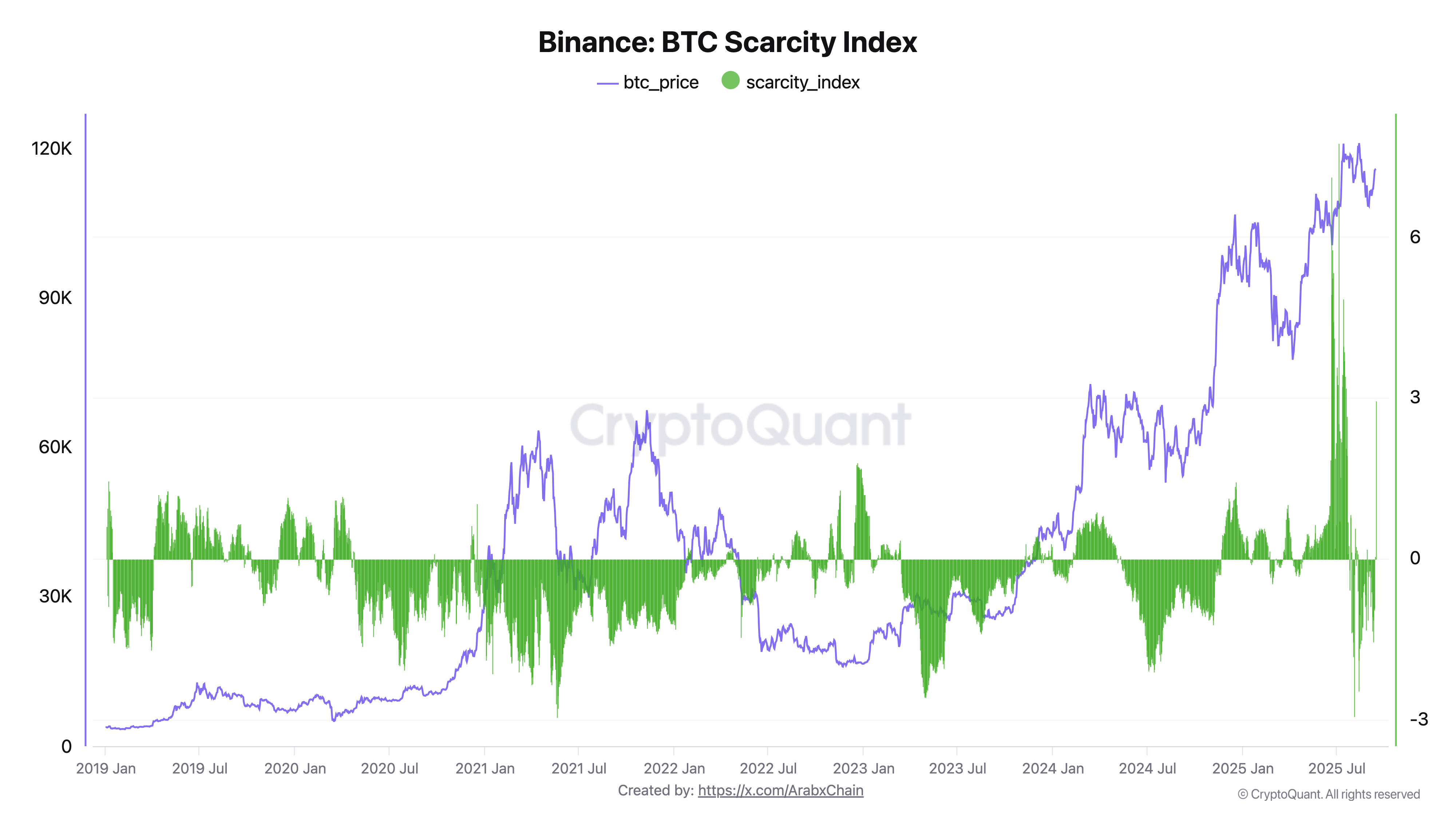 Düşük zincirli bir analiz platformu olan Cryptoquant, hafta sonu Binance’da büyük bir alıcının aktif olabileceği sonucuna vardı. Arap zinciri Binance’ın kıtlık endeksinin kanıt olarak altını çizdi.