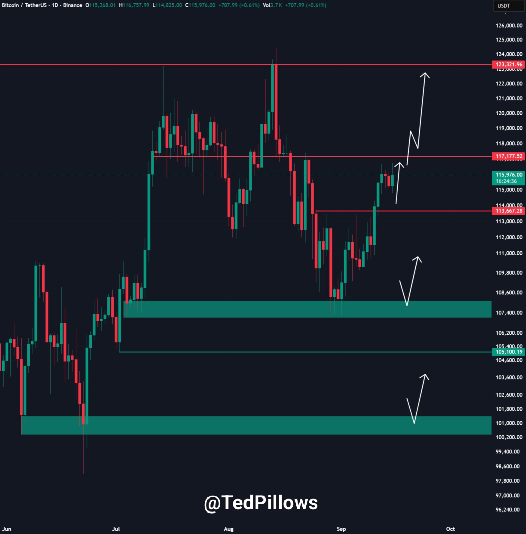 “BTC, şifreleme yatırımcısındaki ve girişimci TED yastıklarındaki son X paylaşımında 117.000-117.200 dolar reddedildi. Bu, Bitcoin’in geri kazanması gereken tek ana seviyedir.